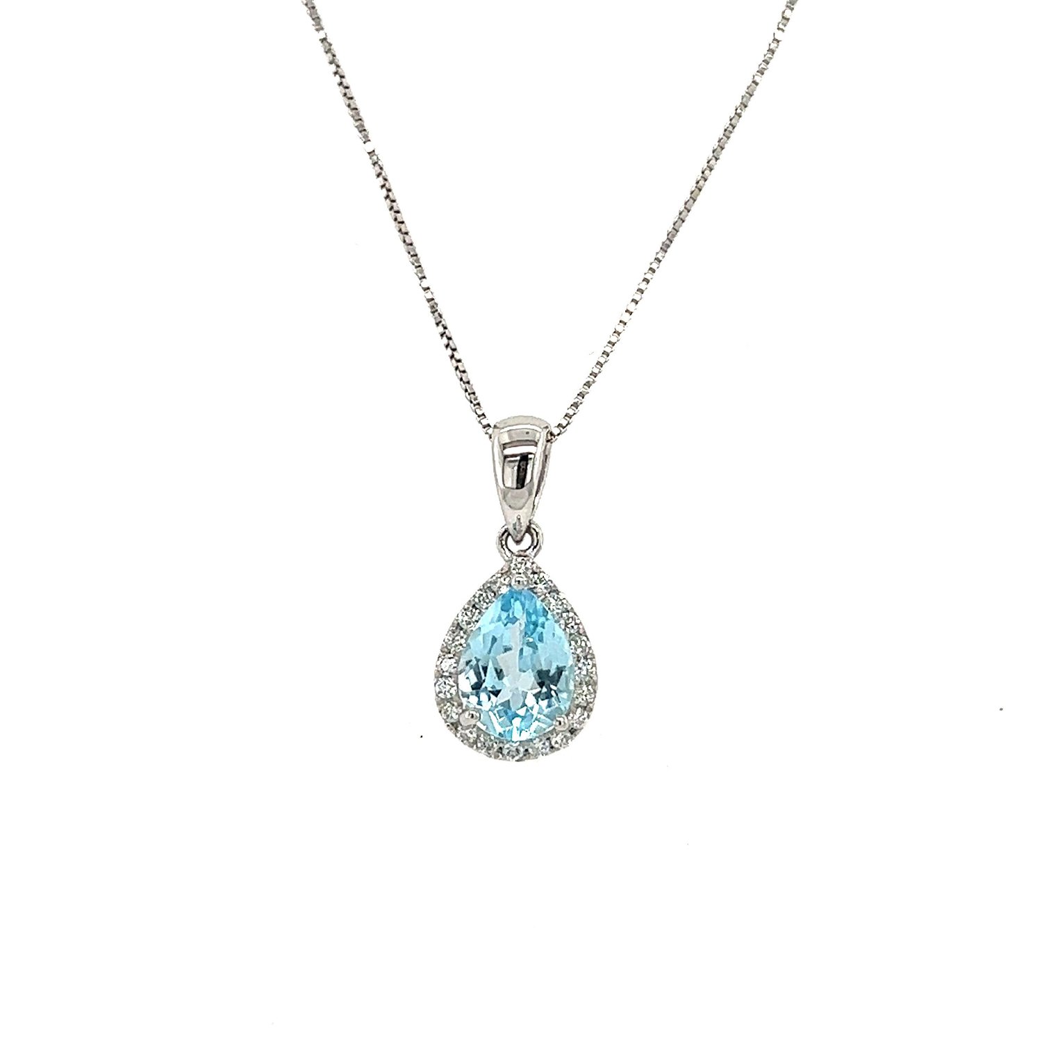 10k white Blue Topaz with diamonds necklace